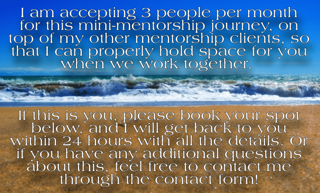 I went into more detail on my own story on the full mentorship page. But by making this investment in my Self, when I was in need of a mentor myself back in 2017, I was able to shift my life in more ways than I could have ever imagined. By doing something that my soul really wanted, maybe for the first time in my life, I shifted the entire energy that my life was built upon back then, and by shifting that foundation, I was able to shift and open up all other aspects of my life. And I dare say with full conviction, that if it wasn’t for me taking that step back then, working with a mentor.. I would not be here, offering all of my experience to you, working passionately towards helping as many people as I possibly can, every day, stepping more and more into my soul mission. It’s a snowball effect really..
